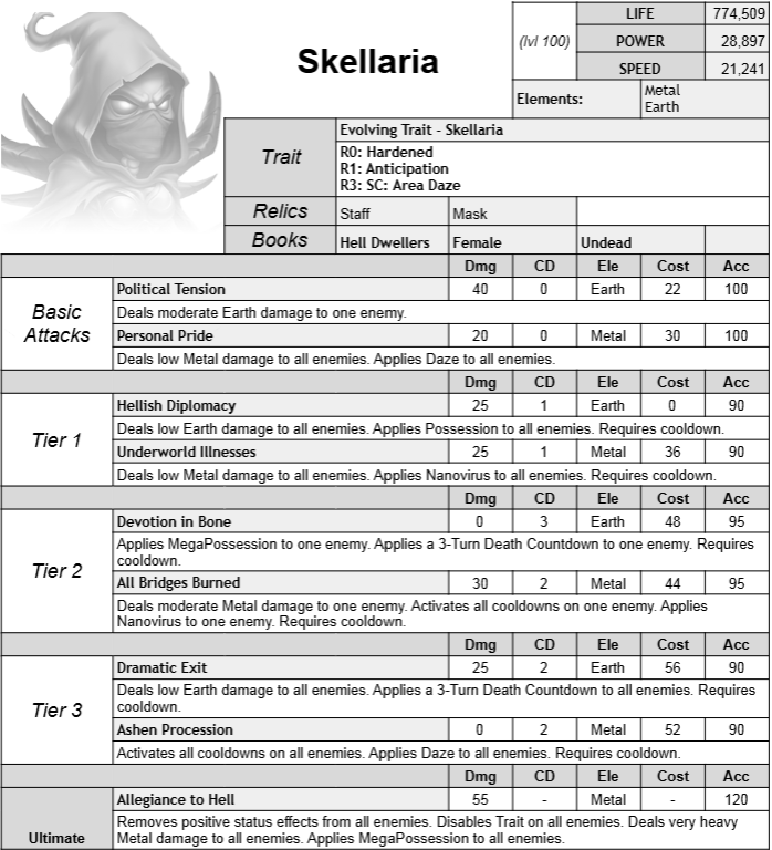 Skellaria est un contrôle de Métal et de Terre avec Activation de recharges et Compte à rebours mortel.