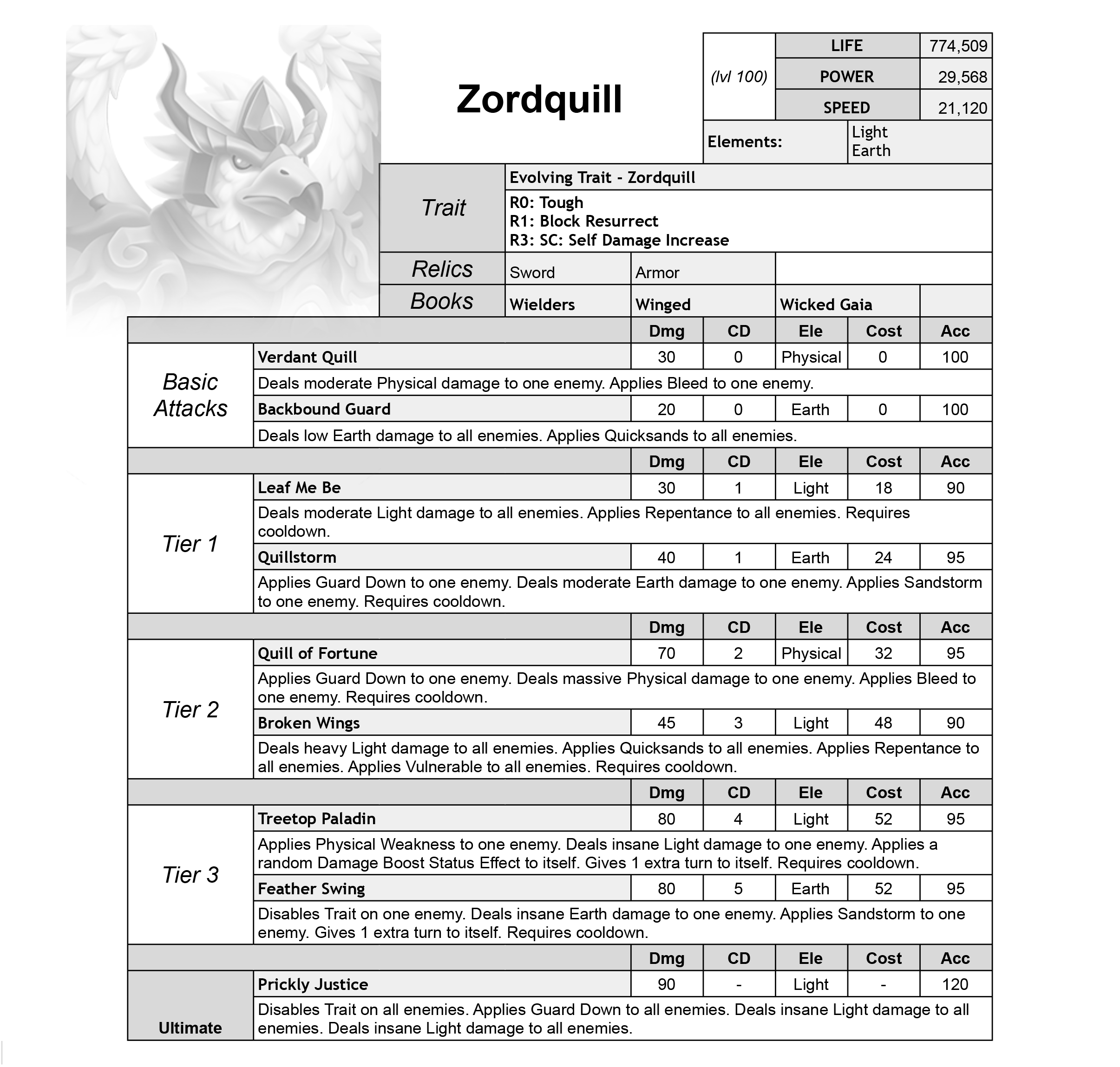 After a tough battle, Zordquill was trying to fly back home to the Righteous Court, but his wounds were too deep and, exhausted, he fell from the sky and landed on top of a tree in the swampy region of the Cardinal Forest. He lost consciousness for days and, when he woke up, it was as if the tree on which he had fallen had nursed him back to health. He was covered in bark, carefully tailored and placed over his chest, almost as if embraced by it.